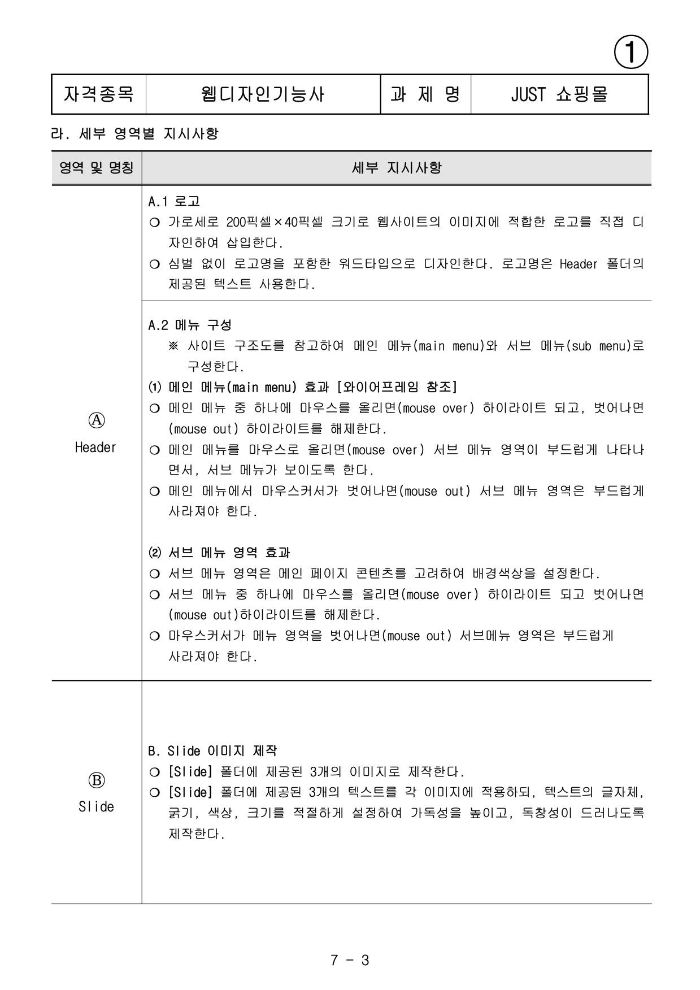 - 시험시간 내에 웹페이지를 제작 후 5MB 용량이 초과되지 않게 저장 후 제출한다.