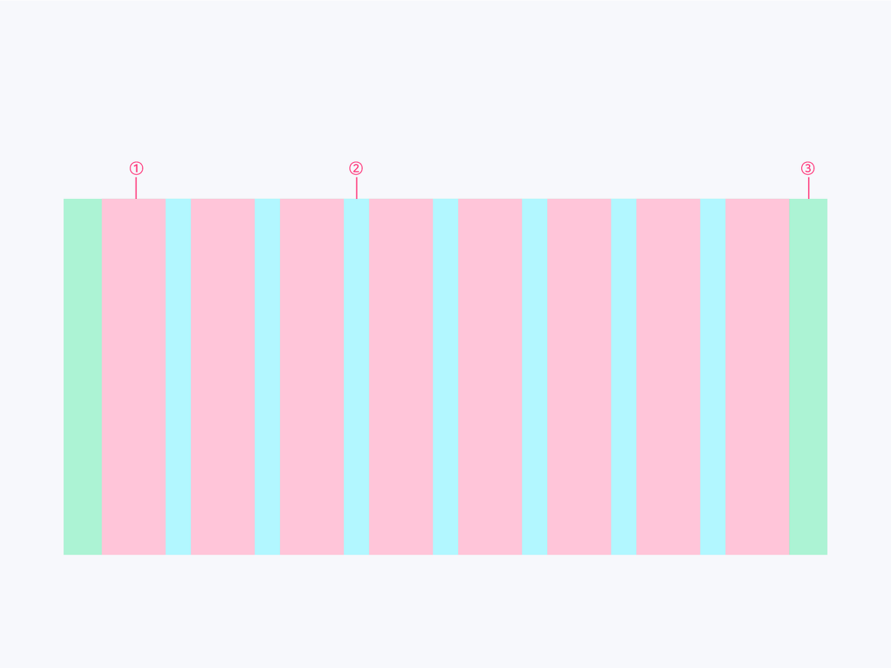 그리드는 칼럼(Column), 거터(Gutter), 마진(Margin) 세 가지 요소로 구성됩니다.