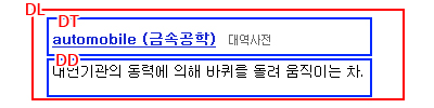 - 정의형(사전형)의 목록을 작성한다. 포함하는 아이템으로 dt및 dd만 포함 할 수 있다.