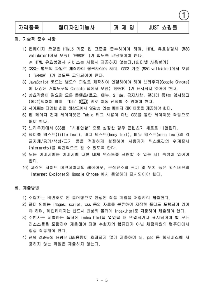 - 시험시간 내에 웹페이지를 제작 후 5MB 용량이 초과되지 않게 저장 후 제출한다.