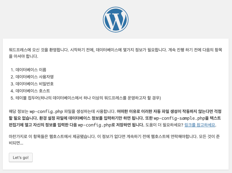 설치는 끝났습니다. 참 쉽죠? 이제 wp 설정만 하면 됩니다.